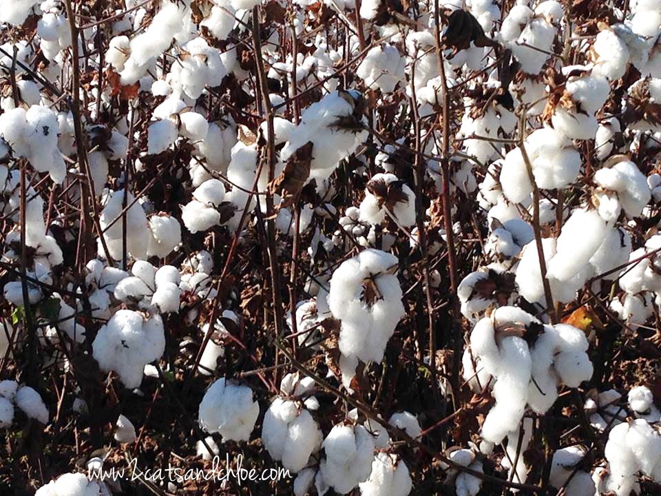 Have you ever seen cotton growing before? Does this happen across the country? I live just above the Virginia and North Carolina state line and you know… I do not think I have ever seen cotton growing in Virginia! A couple miles south though, just across that line, you will see fields of fresh cotton everywhere.