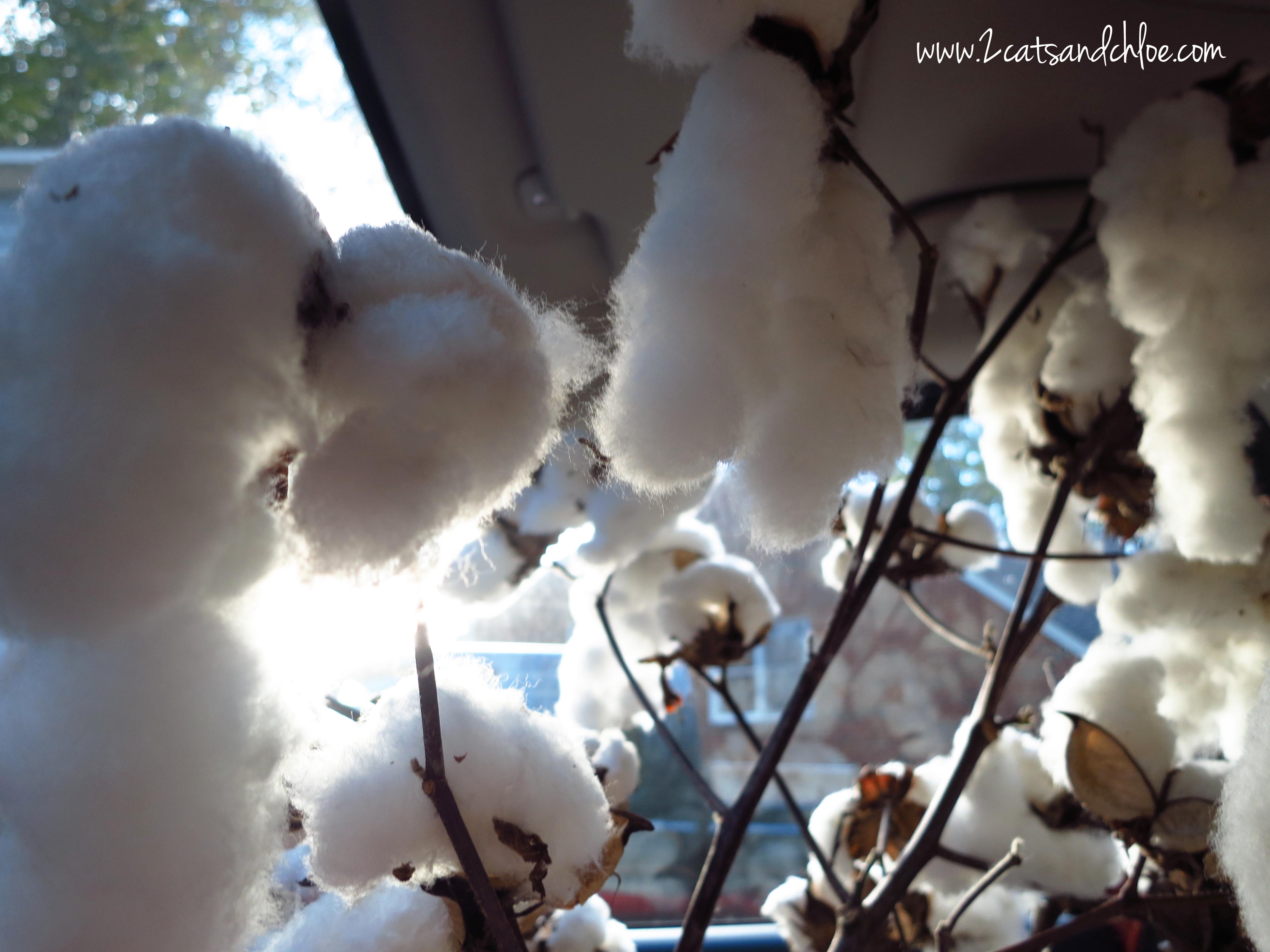When my grandfather was ill, we spent a lot of time traveling to their house, in a neighborhood, surrounded by field after field of cotton. I remember my mom stealing a few branches of this white, fluffy, loveliness from the field behind the one and only pizza place in town, a few days before he passed away. I have no clue why I remember this… and while it was one of the saddest weeks of my life, seeing fields of cotton always reminds me of time spent with my grandparents in Carolina.