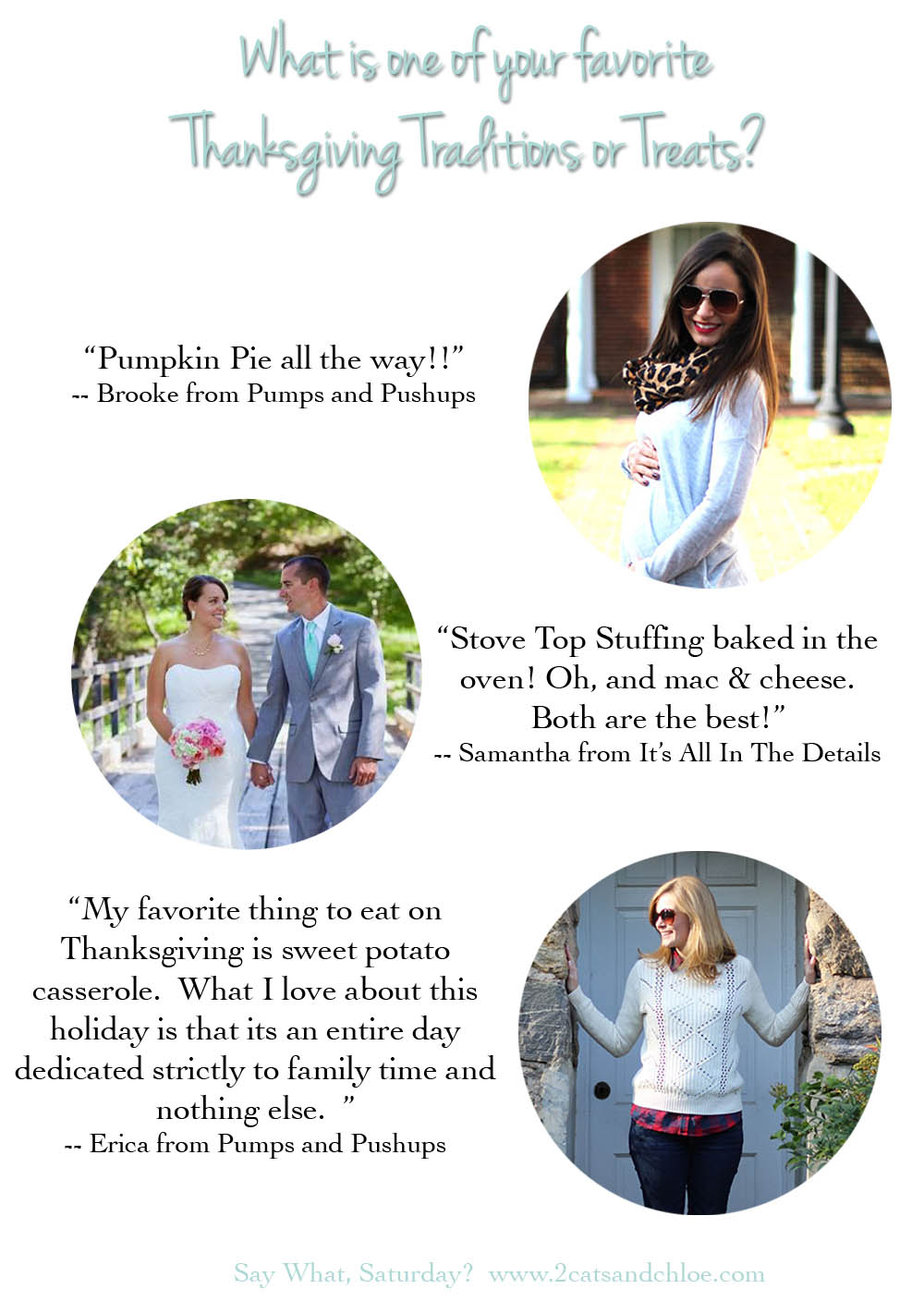 It’s that time of the week again… It’s Saturday! A day notorious around Blogland as a day when nothing really happens. Except around these parts! It’s Say What, Saturday?! The day where I ask my sponsors a simply question and they all give me their fun and unique answers! Today, we are talking about Turkey Day!