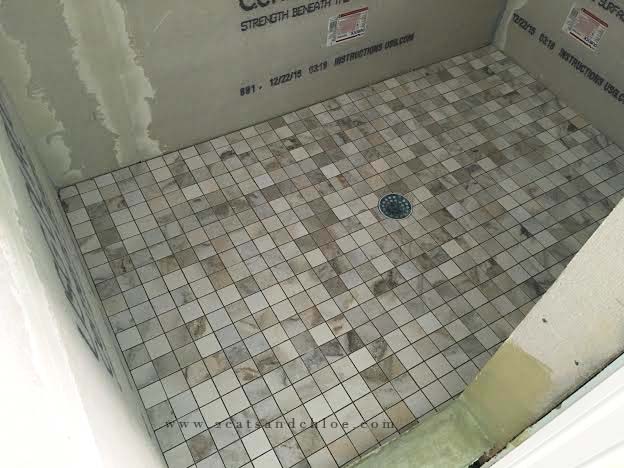 That being said, we used the same color in our master bathroom. It is quite a bit brighter in this room than I had wanted. I have a feeling, this might be the first room we repaint in the long run. The tile guy has been out this past week working on the shower tile… I’m excited to see the progress there next week!