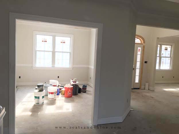 Since my last update, we have real walls and a ton of contractors constantly coming and going now! I think my favorite contractor (other than my godmother who is our painter and who has been sooooo patient with me and my color choices) has been the trim guy. And not just because he curses like a sailor and tells stories ten times longer than mine. I am a sucker for details. I don’t care if it is wedding details or story details. I just love extra details! And the trim carpenter definitely added noticeable details to this place, making the house our home.