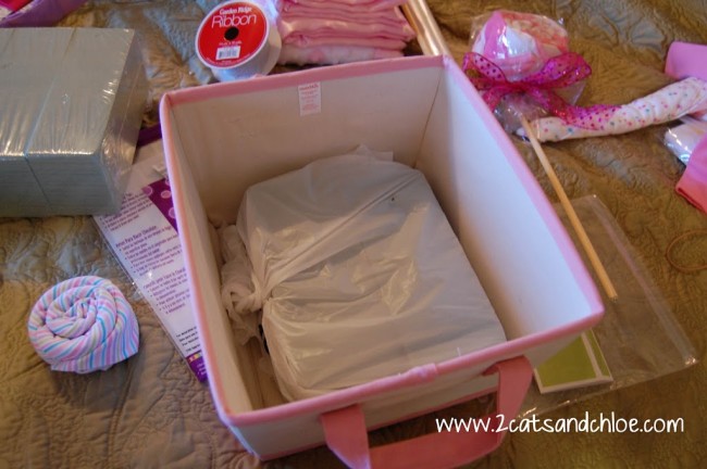 The pink and beige box was only a couple dollars (Target Clearance! Woot!) and I put a soft (again, clearance) blanket around the base of the pops! What do you think!?