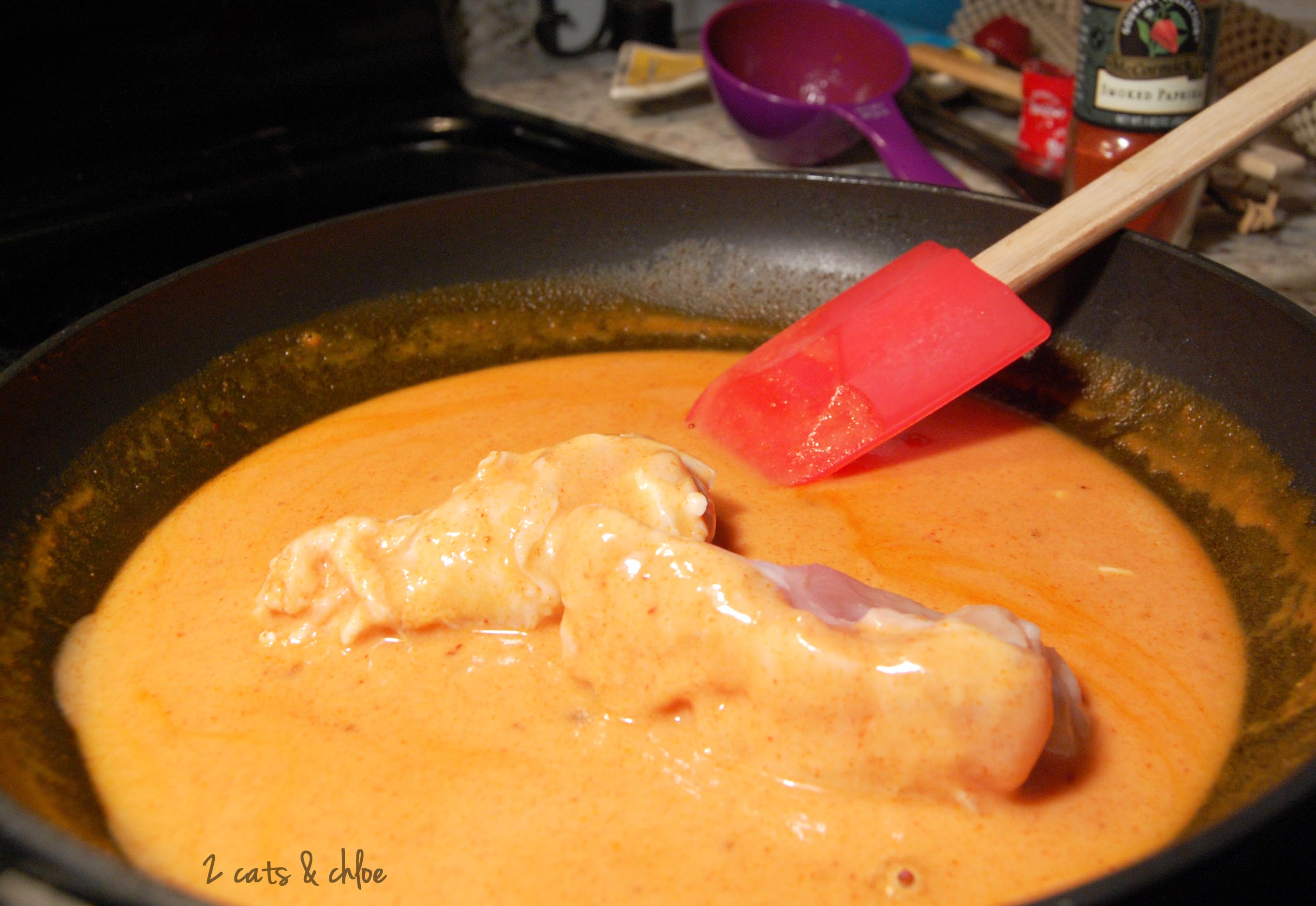 - Remove the Chicken and place on a separate plate when it is cooked. Now we will work on the "gravy!"